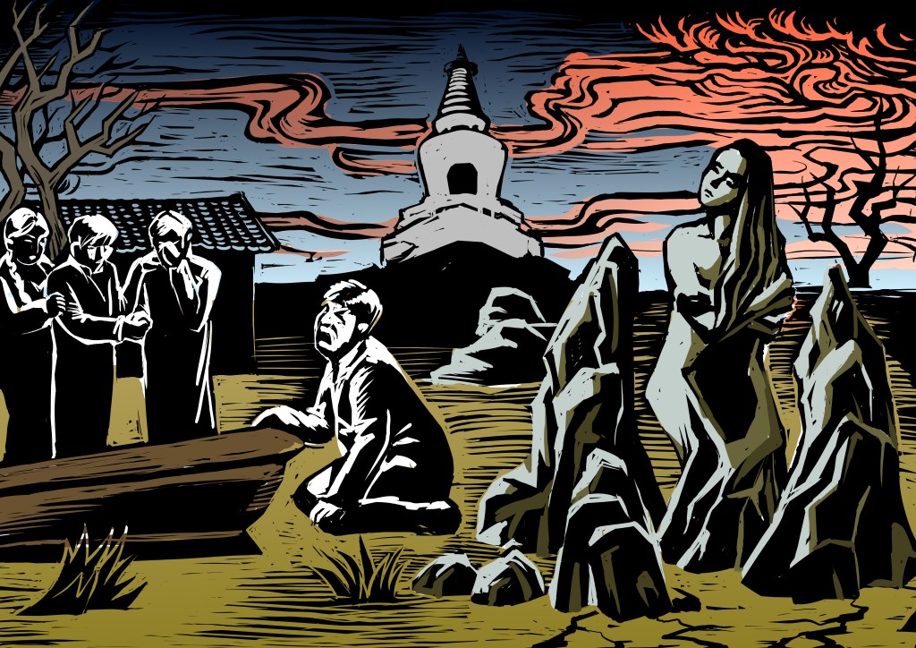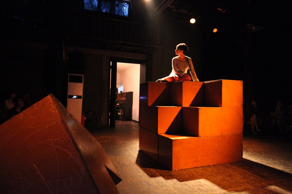 This is the first work I have created, taken from the Soviet playwright Arbudzhov’s theater play “My Poor Marat”, the text is abridged. It vividly depicts the love story between three teenagers growing out of the ruins after World War II, whose love is born out of the pursuit of their ideals and dies because of the destruction of those ideals. The stage treatment utilized the Soma Cube to present St. Petersburg, which was destroyed after the Battle of Leningrad. The audience sits around it, in very close proximity, to watch the actors straining to move and reorganize the stage set, as the giant wooden blocks change slowly throughout the performance.
